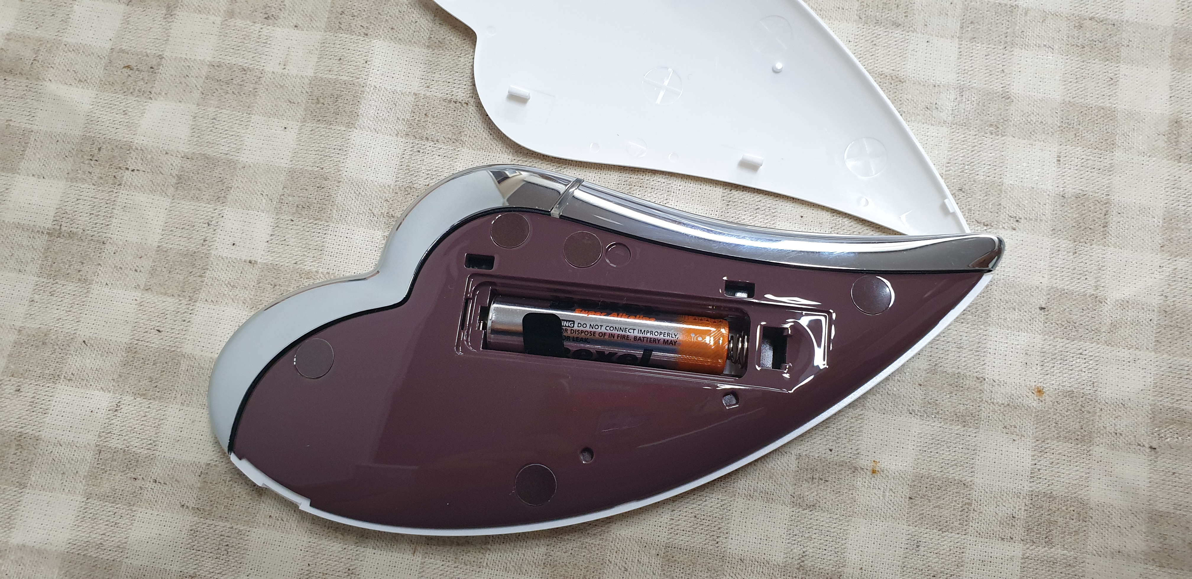 앞의 사진의 옆 홈을 누르면 뚜껑이 열립니다. 위 뚜껑을 열고 함께 배송 온 밧데리 1개를 넣고 닫으면 끝!