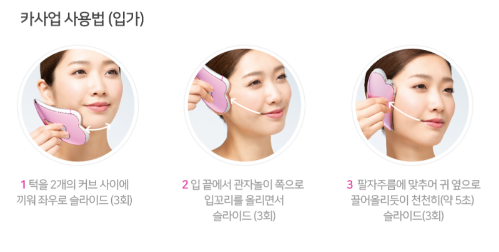 동양의 지혜 괄사 기법에 '마이크로 커런트(미세전류)'와 '이온 스킨 케어'의 테크놀로지를 융합한 미용기기로 피부 안쪽과 바깥쪽에서 아름다운 피부로 이끌어 준다고 합니다.