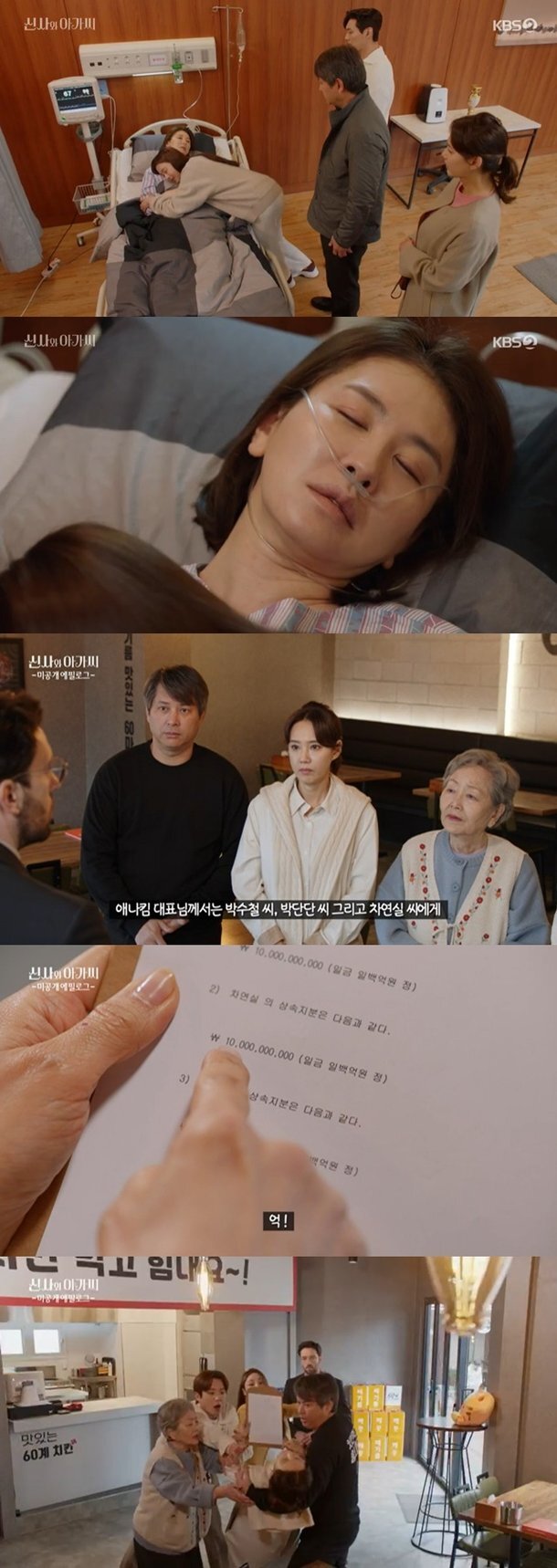 연실은 애나킴의 변호사가 찾아와 자신에게도 유산을 남겼다고 말하자 깜짝 놀랐고, 그 유산이 무려 100억이나 된다는데 한 번 더 놀랐다. 한 때 차연실에게서 남편 박수철과 딸 박단 단을 빼앗으려는 나쁜 마음을 먹었던 애나킴이 유산으로 속죄했다.