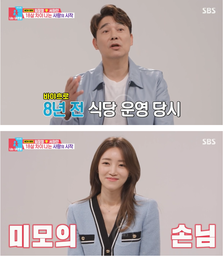 서하얀의 나이는 32세, 임창정의 나이는 50세로 18살 나이차가 나며 첫 만남은 8년 전 포장마차에서 사장과 손님으로 만났다고 했다. 임창정은 서하얀과의 첫 만남에 바로 느낌이 왔다며 가슴이 뛰었다고 했다. 서하얀은 당시 임창정이 번호를 저장하라고 해서 친구와 같이 저장했다고 말했다고 한다.