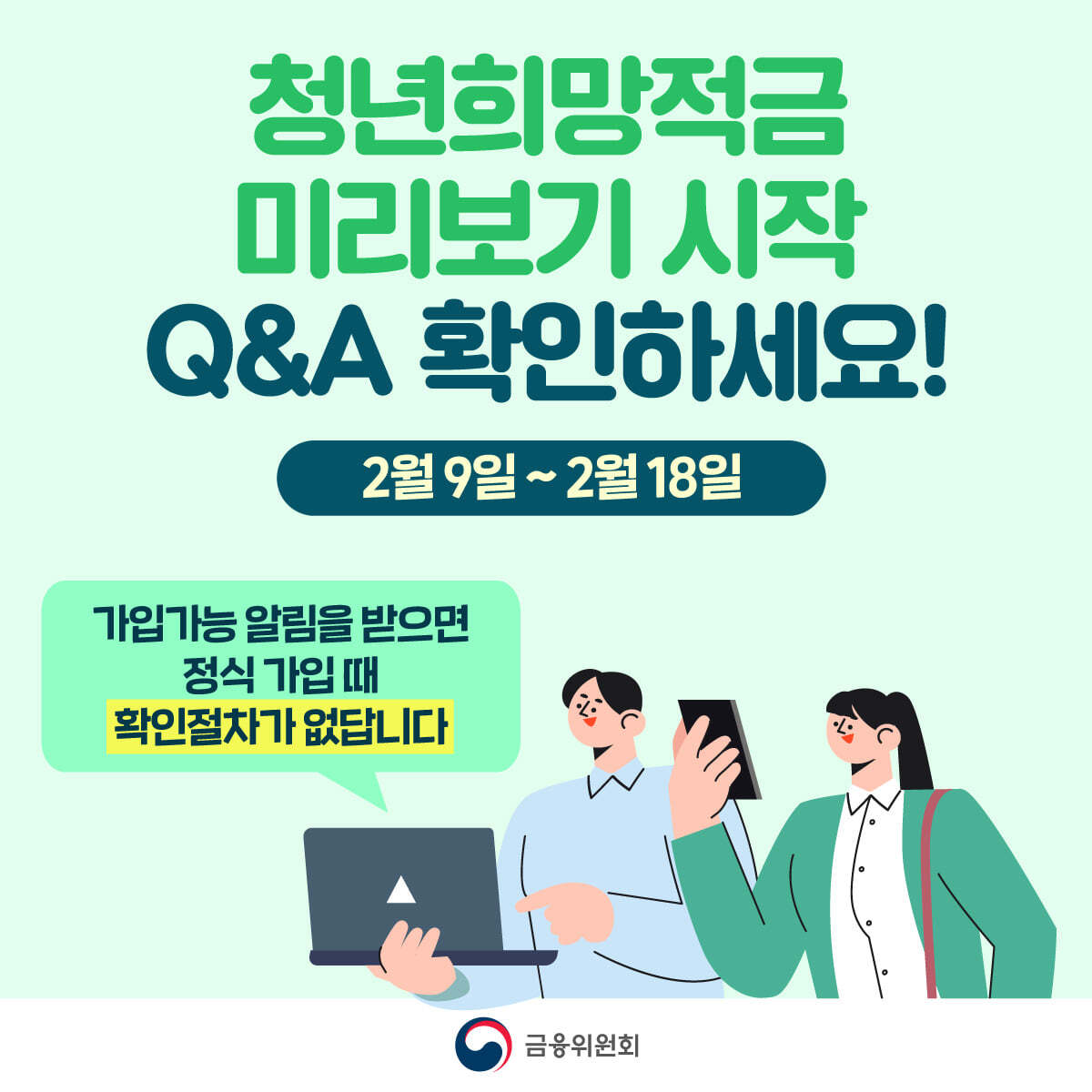 9일부터 16일까지는 가입 가능여부를 확인할수 있는 '청년희망적금 미리보기' 서비스를 각 은행별로 운영한다고 하니
