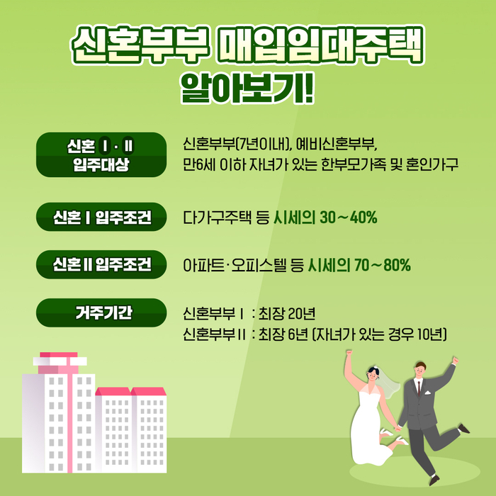 신혼부부 매입임대주택은 크게 신혼 Ⅰ유형과 신혼 Ⅱ유형으로 나뉜다.